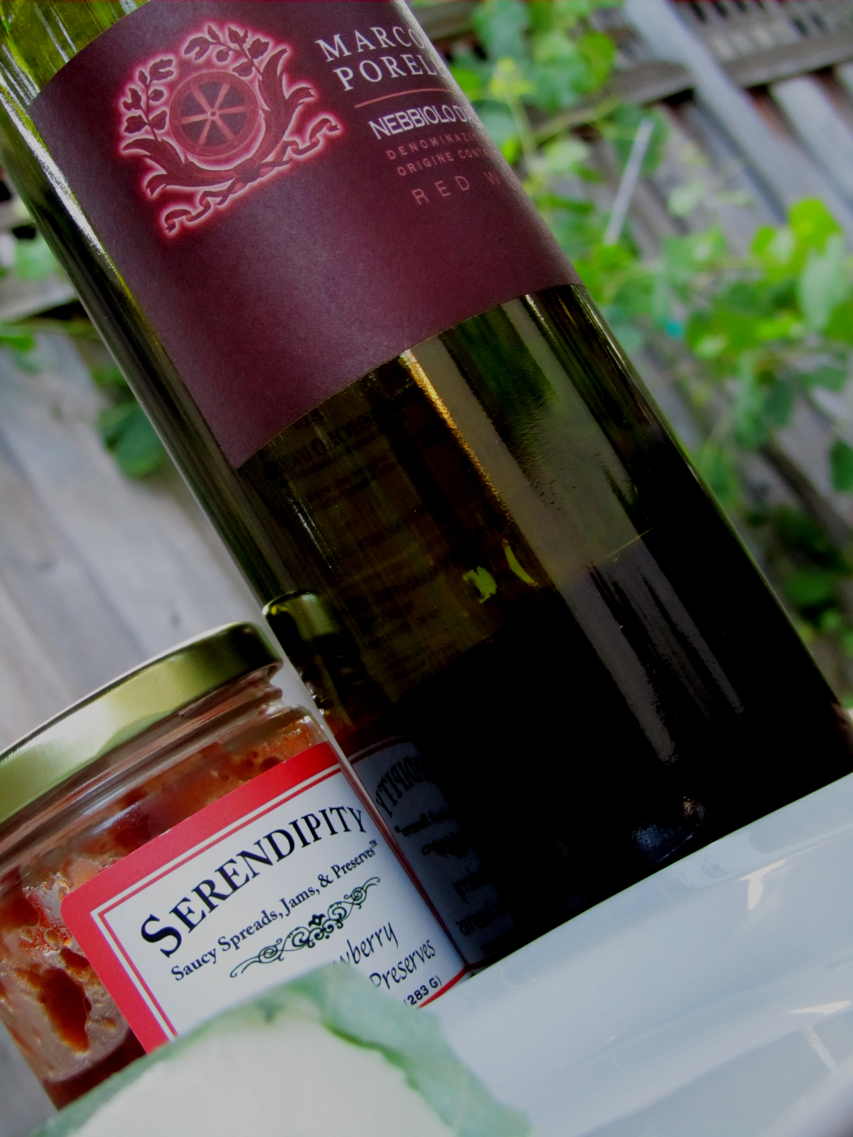 The Porello Nebbiolo d’Alba 2009, as I said, is quite friendly. It expresses rose, balsamic, and fragolini (wild Piemontese strawberries) essences. It provides virtually no resistance, no tannins, and goes down smoothly. The fruit is pretty and the texture, like a rose petal. So in a way, I’m disappointed in it as a Nebbiolo but I can’t not like this wine. There is nothing not to like. And honestly it was a perfect pairing with my Petit Billy and big dollop of Strawberry Balsamic Preserves Jam from my friend’s jam company, Serendipity Saucy Spreads. You can find out more about her latest and greatest inventions at the Serendipity Diary.