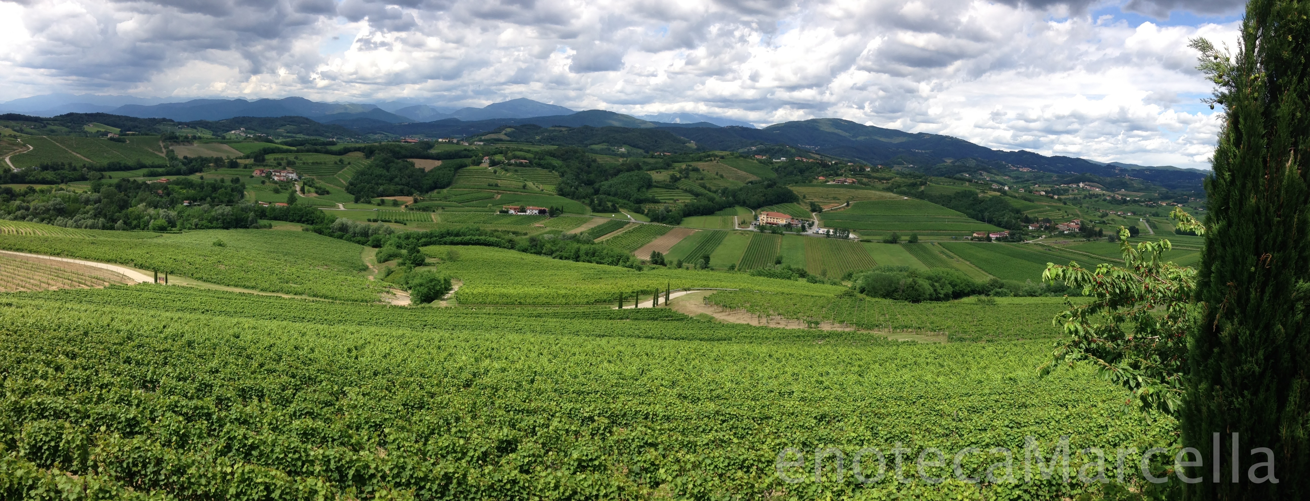 Livon Vineyards with Slovenia behind and the Julian Alps in the background.